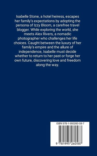 Isabelle Stone, heir to a luxurious hotel empire, is living a life built on expectations, wealth, and status. But behind her glamorous persona lies a woman suffocated by the heavy weight of her family's legacy and the constant pressure to conform to their plans. Longing for freedom and authenticity, Isabelle escapes the spotlight, adopting the alias Izzy Bloom, a carefree travel blogger exploring the world on her terms. As she journeys through exotic locations, capturing the world's beauty through her camera lens, she meets Alex Rivers, a nomadic photographer with a spirit as untamed as the lands he captures. His unconventional lifestyle challenges everything Isabelle thought she knew about success, happiness, and purpose. For the first time, she begins to question her choices-about who she truly is, what she truly wants, and whether her family's empire is worth the price of her soul. But as her secret life unravels, Isabelle is forced to confront the ties that bind her to her past. Caught between her desire for independence and the demands of her family, she must decide whether to return to the world she knows or finally break free for good. The Billionaire's Double Life is a compelling story of self-discovery, love, and the power of choosing your destiny, no matter the cost.