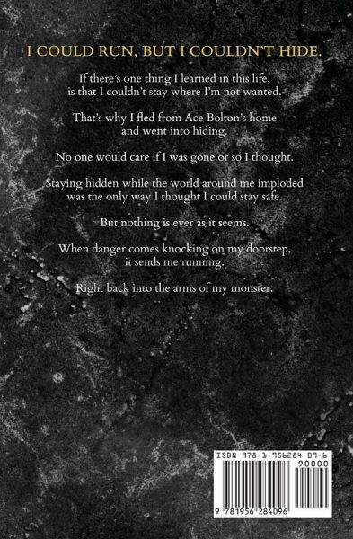 I could run, but I couldn't hide. If there's one thing I learned in this life, is that I couldn't stay where I'm not wanted. That's why I fled from Ace Bolton's home and went into hiding. No one would care if I was gone or so I thought. Staying hidden while the world around me imploded was the only way I thought I could stay safe. But nothing is ever as it seems. When danger comes knocking on my doorstep, it sends me running. Right back into the arms of my monster.