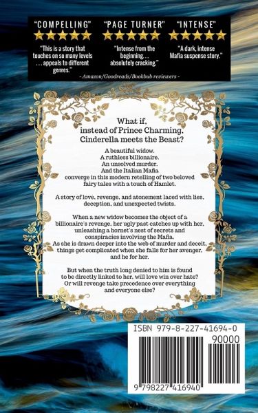 ***** "This is a story that touches on so many levels that appeals to different genres." - Goodreads reviewer ------------------------------ What if, instead of Prince Charming, Cinderella meets the Beast? A beautiful widow, a ruthless billionaire, an unsolved murder, and the Italian Mafia converge in this modern retelling of two beloved fairy tales with a touch of Hamlet. A story of love, revenge, and atonement laced with lies, deception, and unexpected twists. ------------------------------- When a new widow becomes the object of a billionaire's revenge, her ugly past catches up with her, unleashing a hornet's nest of secrets and conspiracies involving the Mafia. As she is drawn deeper into the web of murder and deceit, things get complicated when she falls for her avenger, and he for her. But when the truth denied to him is found to be directly linked to her, will love win over hate? Or will revenge take precedence over everything and everyone else?