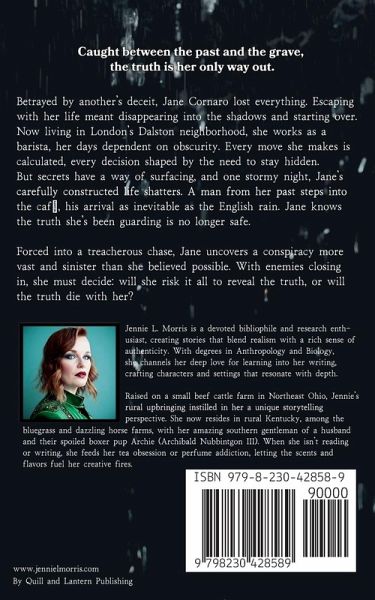 Caught between the past and the grave, the truth is her only way out. Betrayed by another's deceit, Jane Cornaro lost everything. Escaping with her life meant disappearing into the shadows and starting over. Now living in London's Dalston neighborhood, she works as a barista, her days dependent on obscurity. Every move she makes is calculated, every decision shaped by the need to stay hidden. But secrets have a way of surfacing, and one stormy night, Jane's carefully constructed life shatters. A man from her past steps into the café, his arrival as inevitable as the English rain. Jane knows the truth she's been guarding is no longer safe. Forced into a treacherous chase, Jane uncovers a conspiracy more vast and sinister than she believed possible. With enemies closing in, she must decide: will she risk it all to reveal the truth, or will the truth die with her?