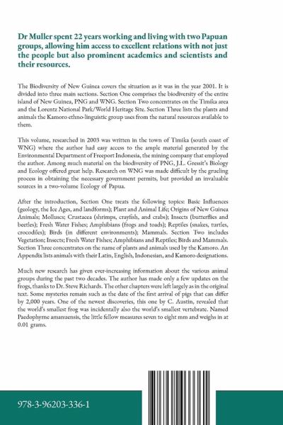 The Biodiversity of New Guinea covers the situation as it was in the year 2001. It is divided into three main sections. Section One comprises the biodiversity of the entire island of New Guinea, PNG and WNG. Section Two concentrates on the Timika area and the Lorentz National Park/World Heritage Site. Section Three lists the plants and animals the Kamoro ethno-linguistic group uses from the natural resources available to them. This volume, researched in 2003 was written in the town of Timika (south coast of WNG) where the author had easy access to the ample material generated by the Environmental Department of Freeport Indonesia, the mining company that employed the author. Among much material on the biodiversity of PNG, J.L. Gressit's Biology and Ecology offered great help. Research on WNG was made difficult by the grueling process in obtaining the necessary government permits, but provided an invaluable sources in a two-volume Ecology of Papua. After the introduction, SectionOne treats the following topics: Basic Influences (geology, the Ice Ages, and landforms); Plant and Animal Life; Origins of New Guinea Animals; Molluscs; Crustacea (shrimps, crayfish, and crabs); Insects (butterflies and beetles); Fresh Water Fishes; Amphibians (frogs and toads); Reptiles (snakes, turtles, crocodiles); Birds (in different environments); Mammals. Section Two includes Vegetation; Insects; Fresh Water Fishes; Amphibians and Reptiles; Birds and Mammals. Section Three concentrates on the name of plants and animals used by the Kamoro. An Appendix lists animals with their Latin, English, Indonesian, and Kamoro designations. Much new research has given ever-increasing information about the various animal groups during the past two decades. The author has made only a few updates on the frogs, thanks to Dr. Steve Richards. The other chapters were left largely as in the original text. Some mysteries remain such as the date of the first arrival of pigs that can differ by 2,000 years. One of the newest discoveries, this one by C. Austin, revealed that the world's smallest frog was incidentally also the world's smallest vertebrate. Named Paedophyrne amanuensis, the little fellow measures seven to eight mm and weighs in at 0.01 grams.