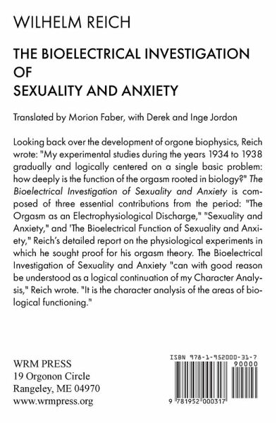 The Bioelectrical Investigation of Sexuality and Anxiety is composed of three essential contributions from this period: "The Orgasm as an Electrophysiological Discharge," "Sexuality and Anxiety," and "The Bioelectrical Function of Sexuality and Anxiety." Reich's detailed report on the physiological experiments undertaken in Norway in 1935-36 in which he sought proof for his orgasm theory. They were compiled by Reich in 1945 and are presented here for the first time with his notes and corrections. The Bioelectrical Investigation of Sexuality and Anxiety "can with good reason be understood as a logical continuation of Character Analysis," Reich wrote in the Foreword. "It is the character analysis of the areas of biological functioning." Today, when emotions are viewed as psychological-that is, non-physical-phenomena, Reich's clinical and experimental investigation of human sexuality gives revolutionary insight into the basically physical nature of emotional life."