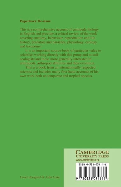 This is a comprehensive account of centipede biology providing a critical review of the work covering anatomy, behaviour, reproduction and life history, predators and parasites, physiology, ecology and taxonomy. It is an important source-book of particular value to scientists working directly with this group and to soil ecologists and those more generally interested in arthropods, arthropod affinities and their evolution. This is a book from an internationally respected scientist and includes many first-hand accounts of his own work both on temperate and tropical species.