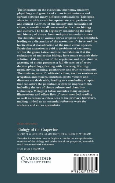 Concise and heavily illustrated account of citrus biology, physiology, genetics and cultivation.