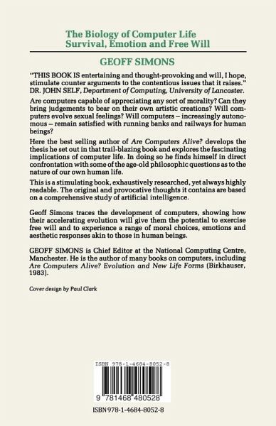 The doctrine of computer life is not congenial to many people. Often they have not thought in any depth about the idea, and it necessarily disturbs their psychological and intellectual frame of reference: it forces a reappraisal of what it is to be alive, what it is to be human, and whether there are profound, yet un expected, implications in the development of modern com puters. There is abundant evidence to suggest that we are wit nessing the emergence of a vast new family of life-forms on earth, organisms that are not based on the familiar metabolic chemistries yet whose manifest 'life credentials' are accumulating year by year. It is a mistake to regard biology as a closed science, with arbitrarily limited categories; and we should agree with Jacob (1974) who observed that 'Contrary to what is imagined, biology is not a unified science'. Biology is essentially concerned with living things, and we should be reluctant to assume that at anyone time our concept and understanding of life are complete and incapable of further refinement. And it seems clear that much of the continuing refinement of biological categories will be stimulated by advances in systems theory, and in particular by those advances that relate to the rapidly expanding world of computing and robotics. We should also remember what Pant in (1968) said in a different context: 'the biological sciences are unrestricted . . . and their investigator must be prepared to follow their problems into any other science whatsoever.