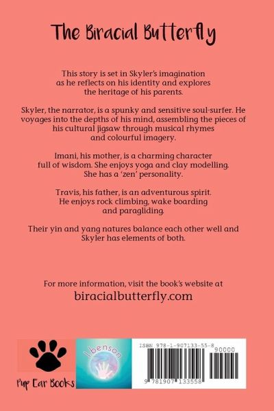 This story is set in Skyler's imagination as he reflects on his identity and explores the heritage of his parents. Skyler, the narrator, is a spunky and sensitive soul-surfer. He voyages into the depths of his mind, assembling the pieces of his cultural jigsaw through musical rhymes and colourful imagery. Imani, his mother, is a charming character full of wisdom. She enjoys yoga and clay modelling. She has a 'zen' personality. Travis, his father, is an adventurous spirit. He enjoys rock climbing, wake boarding and paragliding. Their yin and yang natures balance each other well and Skyler has elements of both. This is his story.