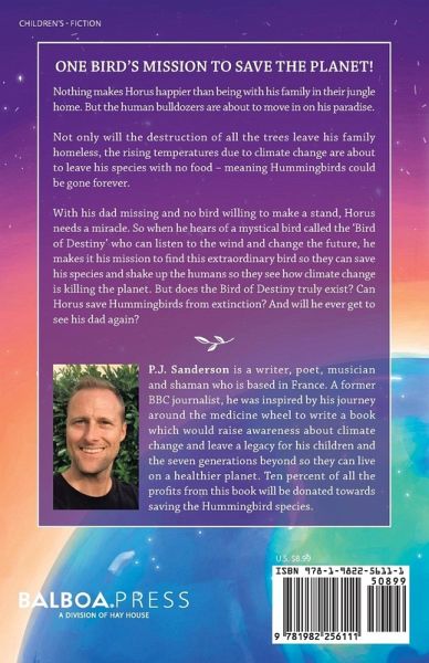 Nothing makes Horus happier than being with his family in their jungle home. But the human bulldozers are about to move in on his paradise. Not only will the destruction of all the trees leave his family homeless, the rising temperatures due to climate change are about to leave his species with no food - meaning Hummingbirds could be gone forever. With his dad missing and no bird willing to make a stand, Horus needs a miracle. So when he hears of a mystical bird called the 'Bird of Destiny' who can listen to the wind and change the future, he makes it his mission to find this extraordinary bird so they can save his species and shake up the humans so they see how climate change is killing the planet. But does the Bird of Destiny truly exist? Can Horus save Hummingbirds from extinction? And will he ever get to see his dad again?