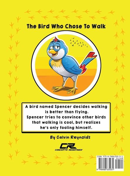 A bird named Spencer decides walking is better than flying. Spencer tries to convince other birds that walking is cool, but he soon realizes a valuable lesson that his fears are holding him back from doing what he was born to do.