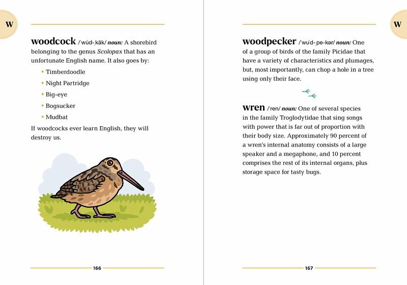 A clever pocket-sized dictionary packed with hilarious and informative definitions and full-color illustrations for over 200 birding terms, from acclaimed cartoonist and science communicator Rosemary Mosco.