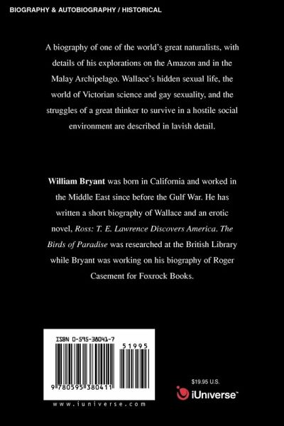 A biography of one of the world's great naturalists, with details of his explorations on the Amazon and in the Malay Archipelago. Wallace's hidden sexual life, the world of Victorian science and gay sexuality, and the struggles of a great thinker to survive in a hostile social environment are described in lavish detail.