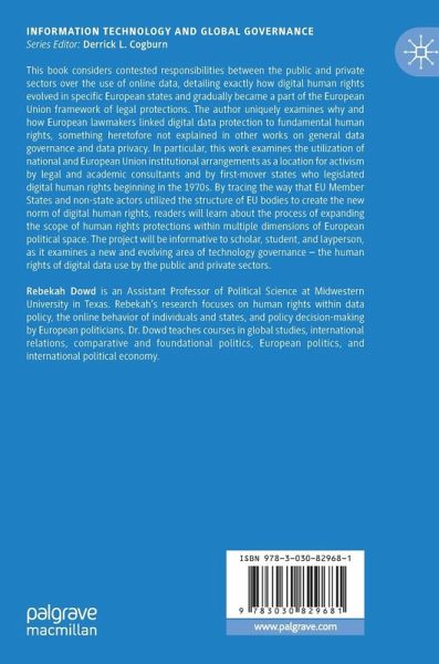 This book considers contested responsibilities between the public and private sectors over the use of online data, detailing exactly how digital human rights evolved in specific European states and gradually became a part of the European Union framework of legal protections. The author uniquely examines why and how European lawmakers linked digital data protection to fundamental human rights, something heretofore not explained in other works on general data governance and data privacy. In particular, this work examines the utilization of national and European Union institutional arrangements as a location for activism by legal and academic consultants and by first-mover states who legislated digital human rights beginning in the 1970s. By tracing the way that EU Member States and non-state actors utilized the structure of EU bodies to create the new norm of digital human rights, readers will learn about the process of expanding the scope of human rights protections within multipledimensions of European political space. The project will be informative to scholar, student, and layperson, as it examines a new and evolving area of technology governance - the human rights of digital data use by the public and private sectors.