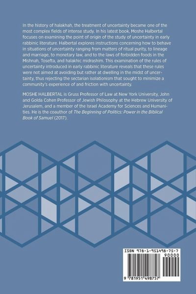 In the history of halakhah, the treatment of uncertainty became one of the most complex fields of intense study. In his latest book, Moshe Halbertal focuses on examining the point of origin of the study of uncertainty in early rabbinic literature, including the Mishnah, Tosefta, and halakhic midrashim. Halbertal explores instructions concerning how to behave in situations of uncertainty ranging from matters of ritual purity, to lineage and marriage, to monetary law, and to the laws of forbidden foods. This examination of the rules of uncertainty reveals that these rules were not aimed at avoiding but rather at dwelling in the midst of uncertainty.