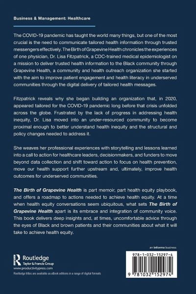This book chronicles the experiences of one physician and how she started Grapevine Health; a community and health outreach organization that focuses on patient engagement and health literacy by bringing together community partners and stakeholders.