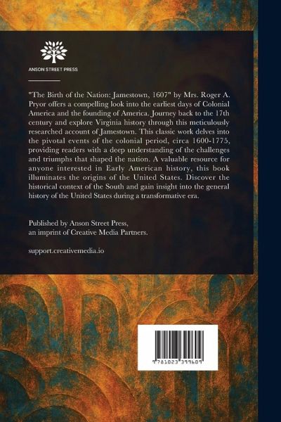 "The Birth of the Nation: Jamestown, 1607" by Mrs. Roger A. Pryor offers a compelling look into the earliest days of Colonial America and the founding of America. Journey back to the 17th century and explore Virginia history through this meticulously researched account of Jamestown. This classic work delves into the pivotal events of the colonial period, circa 1600-1775, providing readers with a deep understanding of the challenges and triumphs that shaped the nation. A valuable resource for anyone interested in Early American history, this book illuminates the origins of the United States.…mehr