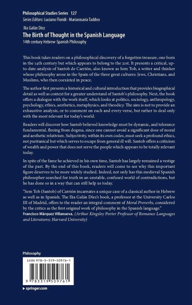 This book takes readers on a philosophical discovery of a forgotten treasure, one born in the 14th century but which appears to belong to the 21st. It presents a critical, up-to-date analysis of Santob de Carrión, also known as Sem Tob, a writer and thinker whose philosophy arose in the Spain of the three great cultures: Jews, Christians, and Muslims, who then coexisted in peace.