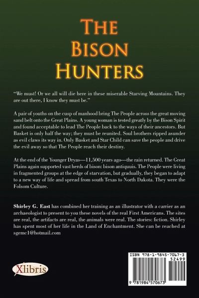 "We must! Or we all will die here in these miserable Starving Mountains. They are out there, I know they must be." A pair of youths on the cusp of manhood bring The People across the great moving sand belt onto the Great Plains. A young woman is tested greatly by the Bison Spirit and found acceptable to lead The People back to the ways of their ancestors. But Basket is only half the way; they must be reunited. Soul brothers ripped asunder as evil claws its way in. Only Basket and Star Child can save the people and drive the evil away so that The People reach their destiny. At the end of the Younger Dryas-11,500 years ago-the rain returned. The Great Plains again supported vast herds of bison: bison antiquuis. The People were living in fragmented groups at the edge of starvation, but gradually, they began to adapt to a new way of life and spread from south Texas to North Dakota. They were the Folsom Culture.
