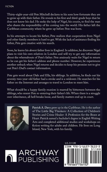 Thirty-eight-year-old Pete Mitchell declares to his sons how fortunate they are to grow up with their father. He reveals to his first and third-grade boys that he does not know his dad. He seeks the help of Nigel, his cousin, to find the man who shares the responsibility of his coming into the world. His father left the Caribbean community where he grew up before Pete was born. In his attempts to locate his father, Pete realizes that cooperation from Nigel and other family members is hard to get. With the lack of assistance, in finding his father, Pete gets creative with his search. Soon, he learns his absent father lives in England. In addition, he discovers Nigel plans to visit his own relatives in London and will try to get any information about the whereabouts of Pete's father. Pete anxiously waits for Nigel to return so he can get his father's address and phone number. However, he experiences another setback when Nigel returns and decides to keep a promise he made - a pledge not to give out Pete's Dad's contact information. Pete gets word about Dale and Ella, his siblings. Also, he finds out his seventy-two-year-old father had a stroke and is a widower. He searches for his father on the Internet and arranges to travel to London to meet him. What should be a happy family reunion is marred by bitterness between the siblings, who resent Pete re-entering their father's life. When there is a struggle over inheritance, all hell breaks loose, and family matters end up in court.