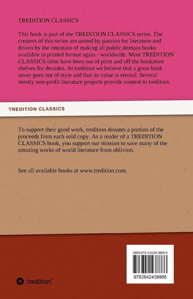 This book is part of the TREDITION CLASSICS series. The creators of this series are united by passion for literature and driven by the intention of making all public domain books available in printed format again - worldwide. At tredition we believe that a great book never goes out of style. Several mostly non-profit literature projects provide content to tredition. To support their good work, tredition donates a portion of the proceeds from each sold copy. As a reader of a TREDITION CLASSICS book, you support our mission to save many of the amazing works of world literature from oblivion.