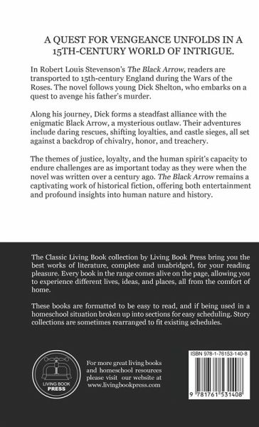 In Robert Louis Stevenson's The Black Arrow, readers are transported to 15th-century England during the Wars of the Roses. The novel follows young Dick Shelton, who embarks on a quest to avenge his father's murder. Along his journey, Dick forms a steadfast alliance with the enigmatic Black Arrow, a mysterious outlaw. Their adventures include daring rescues, shifting loyalties, and castle sieges, all set against a backdrop of chivalry, honor, and treachery. The themes of justice, loyalty, and the human spirit's capacity to endure challenges are as important today as they were when the novel was written over a century ago. The Black Arrow remains a captivating work of historical fiction, offering both entertainment and profound insights into human nature and history.