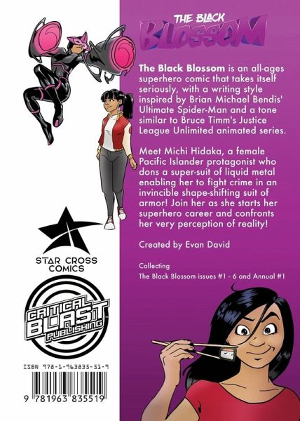 Meet Michi Hidaka, a Pacific Islander who dons a super-suit of liquid metal, enabling her to fight crime in an invincible shape-shifting suit of armor! Join her as she starts her superhero career and confronts her very perception of reality! Collecting The Black Blossom issues #1 - 6 and Annual #1