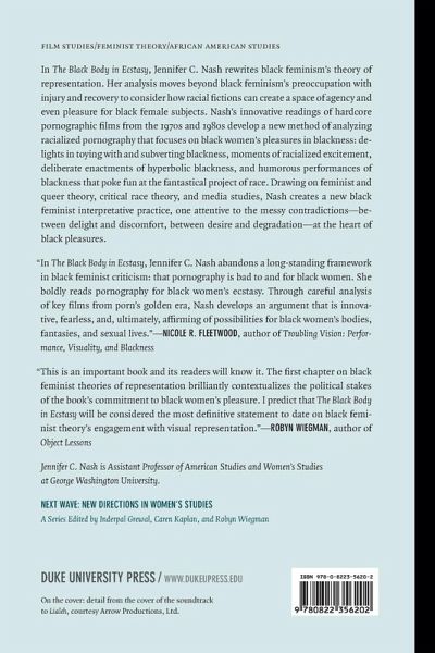 In The Black Body in Ecstasy, Jennifer C. Nash rewrites black feminism's theory of representation. Her analysis moves beyond black feminism's preoccupation with injury and recovery to consider how racial fictions can create a space of agency and even pleasure for black female subjects. Nash's innovative readings of hardcore pornographic films from the 1970s and 1980s develop a new method of analyzing racialized pornography that focuses on black women's pleasures in blackness: delights in toying with and subverting blackness, moments of racialized excitement, deliberate enactments of hyperbolic blackness, and humorous performances of blackness that poke fun at the fantastical project of race. Drawing on feminist and queer theory, critical race theory, and media studies, Nash creates a new black feminist interpretative practice, one attentive to the messy contradictions-between delight and discomfort, between desire and degradation-at the heart of black pleasures.