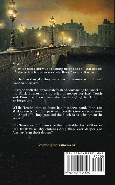 Tessie and Finn want nothing more than to sail across the Atlantic and start their lives fresh in Boston.But before they do, they must save a woman who doesn't want to be saved.Charged with the impossible task of convincing her mother, the Black Bonnet, to step aside or accept her fate, Tessie and Finn are drawn into the battle raging for Dublin's underground. While Tessie tries to force her mother's hand, and Finn and Mickey confront the ghosts of Dublin's past, a deadly showdown between the Angel of Bishopsgate and the Black Bonnet brews on the horizon. Can Tessie and Finn survive the inevitable clash of foes, or will Dublin's murky clutches drag them ever deeper and further from their dream?