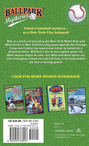 Batter up! It's another Ballpark Mysteries chapter book. Next up is New York City! Why is a black cat haunting the New York Mets? Kate and Mike arrive in New York for a big game against the Chicago Cubs, but Cookie, the team's star hitter, is rattled by a phantom feline. Without a win at that night's game, the Mets' season might be over. Can Mike and Kate figure out who's bringing a black cat and bad luck to the team before the big game? Ballpark Mysteries are the all-star matchup of fun sleuthing and baseball action, perfect for readers of Ron Roy's A to Z Mysteries and Matt Christopher's sports books, and younger siblings of Mike Lupica fans. Each Ballpark Mystery also features Dugout Notes with more amazing baseball facts.