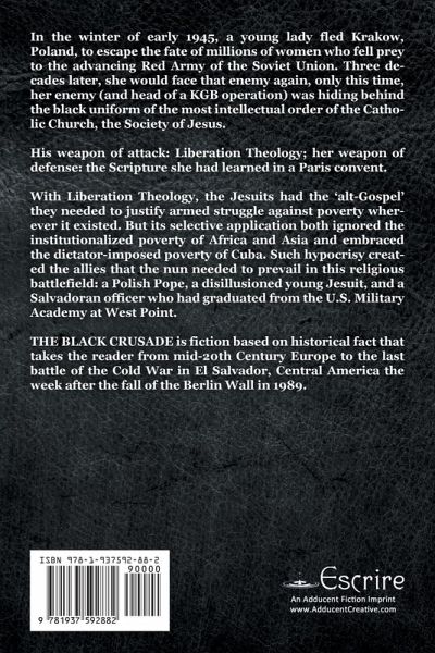 In the winter of early 1945, a young lady fled Krakow, Poland, to escape the fate of millions of women who fell prey to the advancing Red Army of the Soviet Union. Three decades later, she would face that enemy again, only this time, her enemy (and head of a KGB operation) was hiding behind the black uniform of the most intellectual order of the Catholic Church, the Society of Jesus. His weapon of attack: Liberation Theology; her weapon of defense: the Scripture she had learned in a Paris convent. With Liberation Theology, the Jesuits had the 'alt-Gospel' they needed to justify armed struggle against poverty wherever it existed. But its selective application both ignored the institutionalized poverty of Africa and Asia and embraced the dictator-imposed poverty of Cuba. Such hypocrisy created the allies that the nun needed to prevail in this religious battlefield: a Polish Pope, a disillusioned young Jesuit, and a Salvadoran officer who had graduated from the U.S. Military Academy at West Point. The Black Crusade is fiction based on historical fact that takes the reader from mid-20th Century Europe to the last battle of the Cold War in El Salvador, Central America the week after the fall of the Berlin Wall in 1989.
