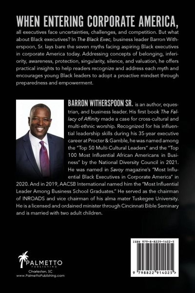 Prepping future Black executives for the rigors of a career in corporate America We are often told to focus on things that are within our control. But for Black executives in corporate America, it is the only way to survive. As Barron Witherspoon, Sr. learned, getting ahead as a Black executive meant possessing a higher tolerance for hardship than his white peers. Intrigued by this reality and its prevalence in the modern workplace, Witherspoon shares his real-life experiences working within a corporate environment to help aspiring Black leaders navigate their career trajectory and longevity. In The Black Exec, Witherspoon identifies seven nuanced myths facing Black executives today no matter how well-intentioned the organization and company culture may be. These seven myths are described through seven simple phrases: - "They lowered the standards for you." - "They are better than you." - "They don't know you." - "They have your back." - "They only have you" - "They can't hear you." - "They don't need you." If left unchecked, these myths can threaten to derail any ambitious leader of color. Addressing concepts of belonging, inferiority, awareness, protection, silence, and valuation, Witherspoon offers practical insights to help readers recognize and address each myth while unapologetically delivering his thoughts on racial disparity within corporate America. Witherspoon's guidebook is a story of personal empowerment, encouraging young Black leaders of tomorrow to adopt a proactive mindset in the face of adversity, being confident and prepared to meet any challenge. Targeting young, aspiring Black leaders who have recently entered or will soon enter corporate America, the book imparts timely advice and hard-earned wisdom for establishing a successful career in business.