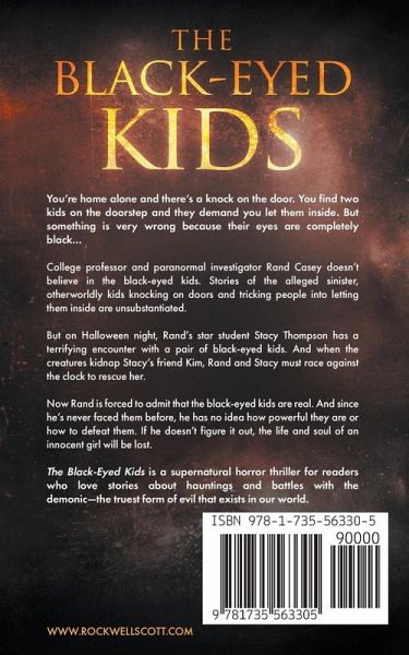 You're home alone and there's a knock on the door. You find two kids on the doorstep and they demand you let them inside. But something is very wrong because their eyes are completely black... College professor and paranormal investigator Rand Casey doesn't believe in the black-eyed kids. Stories of the alleged sinister, otherworldly kids knocking on doors and tricking people into letting them inside are unsubstantiated. But on Halloween night, Rand's star student Stacy Thompson has a terrifying encounter with a pair of black-eyed kids. And when the creatures kidnap Stacy's friend Kim, Rand and Stacy must race against the clock to rescue her. Now Rand is forced to admit that the black-eyed kids are real. And since he's never faced them before, he has no idea how powerful they are or how to defeat them. If he doesn't figure it out, the life and soul of an innocent girl will be lost. The Black-Eyed Kids is a supernatural horror thriller for readers who love stories about hauntings and battles with the demonic-the truest form of evil that exists in our world.