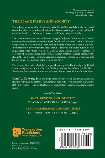 This volume focuses on the black family in the United States and the social forces and issues that affect it, including education, healthcare, racism, poverty, and politics. It examines the effects of these social forces on individuals as well as families. Contributions are varied. "A Biscuit for a Letter" examines education in the antebellum South. "Black Intellectuals on Trial" and "Africans' Perspectives on Race in the US" both analyse the role of race and racism in America. "Feminization of Poverty and the Black Family" illustrates the double burden of race and gender borne by black women. "It's Gotta Be Some Drama!" analyses the televised depiction of black colleges and universities. "African-centred Research Frameworks" studies the importance of cultural awareness in academia. "Work to Be Done" recounts the activism of black women in the Democratic Party. This volume offers an interdisciplinary approach to study of the black family in the United States, taking into account the forces of the larger society that influence it. The Black Family and Society is the most recent volume in Transaction's Africana Studies series.