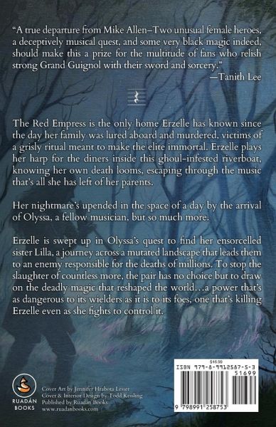 The Red Empress is the only home Erzelle has known since the day her family was lured aboard and murdered, victims of a grisly ritual meant to make the elite immortal. Erzelle plays her harp for the diners inside this ghoul-infested riverboat, knowing her own death looms, escaping through the music that's all she has left of her parents. Her nightmare's upended in the space of a day by the arrival of Olyssa, a fellow musician, but so much more. Erzelle is swept up in Olyssa's quest to find her ensorcelled sister Lilla, a journey across a mutated landscape that leads them to an enemy responsible for the deaths of millions. To stop the slaughter of countless more, the pair has no choice but to draw on the deadly magic that reshaped the world ... a power that's as dangerous to its wielders as it is to its foes, one that's killing Erzelle even as she fights to control it. "Some very black magic indeed... A prize for the multitude of fans who relish strong Grand Guignol with their sword and sorcery." -Tanith Lee "A dark, luscious feast of a book... Allen has created a fantastic world of fantasy and horror like a Bosch painting, like a Shostakovitch symphony-something out of a beautiful nightmare." -R.S. Belcher