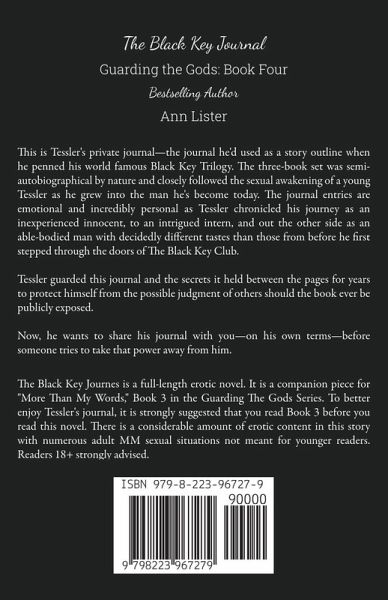 This is Tessler's private journal—the journal he'd used as a story outline when he penned his world famous Black Key Trilogy. The three-book set was semi-autobiographical by nature and closely followed the sexual awakening of a young Tessler as he grew into the man he's become today. The journal entries are emotional and incredibly personal as Tessler chronicled his journey as an inexperienced innocent, to an intrigued intern, and out the other side as an able-bodied man with decidedly different tastes than those from before he first stepped through the doors of The Black Key Club. Tessler guarded this journal and the secrets it held between the pages for years to protect himself from the possible judgment of others should the book ever be publicly exposed. Now, he wants to share his journal with you—on his own terms—before someone tries to take that power away from him.