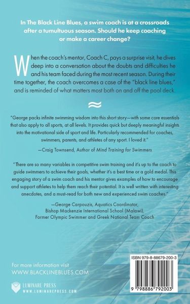 In The Black Line Blues, a swim coach is at a crossroads after a tumultuous season. Should he keep coaching or make a career change? When the coach's mentor, Coach C, pays a surprise visit, he dives deep into a conversation about the doubts and difficulties he and his team faced during the most recent season. During their time together, the coach overcomes a case of the "black line blues," and is reminded of what matters most both on and off the pool deck.