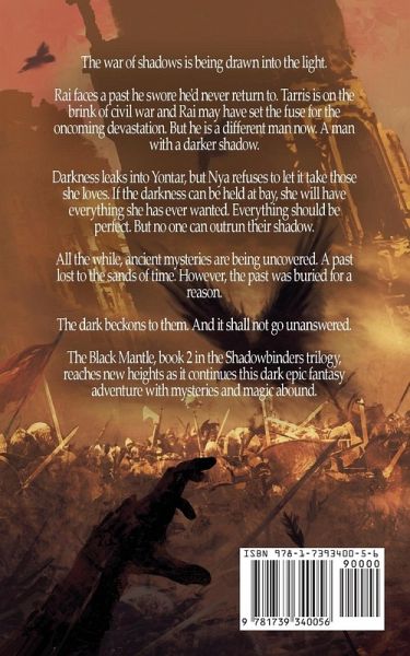 The war of shadows is being drawn into the light. Rai faces a past he swore he'd never return to. Tarris is on the brink of civil war and Rai may have set the fuse for the oncoming devastation. But he is a different man now. A man with a darker shadow. Darkness leaks into Yontar, but Nya refuses to let it take those she loves. If the darkness can be held at bay, she will have everything she has ever wanted. Everything should be perfect. But no one can outrun their shadow. All the while, ancient mysteries are being uncovered. A past lost to the sands of time. However, the past was buried for a reason. The dark beckons to them. And it shall not go unanswered. The Black Mantle, book 2 in the Shadowbinders trilogy, reaches new heights as it continues this dark epic fantasy adventure with mysteries and magic abound.