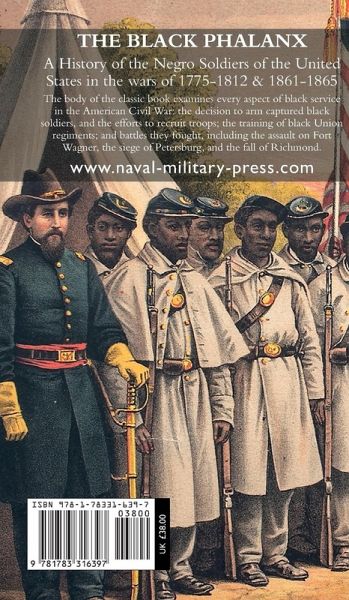 The body of the classic book examines every aspect of black service in the American Civil War: the decision to arm captured black soldiers, and the efforts to recruit troops; the training of black Union regiments; and battles they fought, including the assault on Fort Wagner, the siege of Petersburg, and the fall of Richmond.