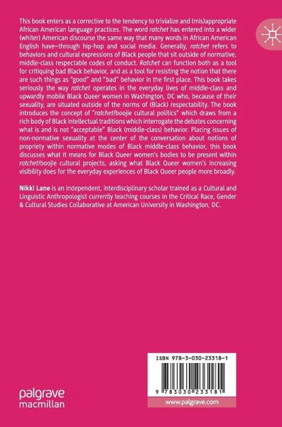 This book enters as a corrective to the tendency to trivialize and (mis)appropriate African American language practices. The word ratchet has entered into a wider (whiter) American discourse the same way that many words in African American English have-through hip-hop and social media. Generally, ratchet refers to behaviors and cultural expressions of Black people that sit outside of normative, middle-class respectable codes of conduct. Ratchet can function both as a tool for critiquing bad Black behavior, and as a tool for resisting the notion that there are such things as "good" and "bad" behavior in the first place. This book takes seriously the way ratchet operates in the everyday lives of middle-class and upwardly mobile Black Queer women in Washington, DC who, because of their sexuality, are situated outside of the norms of (Black) respectability. The book introduces the concept of "ratchet/boojie cultural politics" which draws from a rich bodyof Black intellectual traditions which interrogate the debates concerning what is and is not "acceptable" Black (middle-class) behavior. Placing issues of non-normative sexuality at the center of the conversation about notions of propriety within normative modes of Black middle-class behavior, this book discusses what it means for Black Queer women's bodies to be present within ratchet/boojie cultural projects, asking what Black Queer women's increasing visibility does for the everyday experiences of Black queer people more broadly.