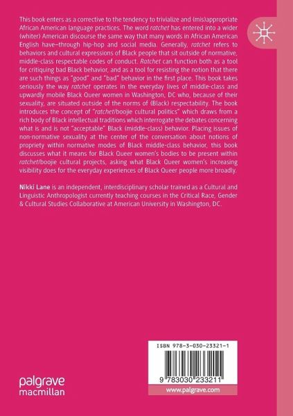 This book enters as a corrective to the tendency to trivialize and (mis)appropriate African American language practices. The word ratchet has entered into a wider (whiter) American discourse the same way that many words in African American English have-through hip-hop and social media. Generally, ratchet refers to behaviors and cultural expressions of Black people that sit outside of normative, middle-class respectable codes of conduct. Ratchet can function both as a tool for critiquing bad Black behavior, and as a tool for resisting the notion that there are such things as "good" and "bad" behavior in the first place. This book takes seriously the way ratchet operates in the everyday lives of middle-class and upwardly mobile Black Queer women in Washington, DC who, because of their sexuality, are situated outside of the norms of (Black) respectability. The book introduces the concept of "ratchet/boojie cultural politics" which draws from a rich bodyof Black intellectual traditions which interrogate the debates concerning what is and is not "acceptable" Black (middle-class) behavior. Placing issues of non-normative sexuality at the center of the conversation about notions of propriety within normative modes of Black middle-class behavior, this book discusses what it means for Black Queer women's bodies to be present within ratchet/boojie cultural projects, asking what Black Queer women's increasing visibility does for the everyday experiences of Black queer people more broadly.