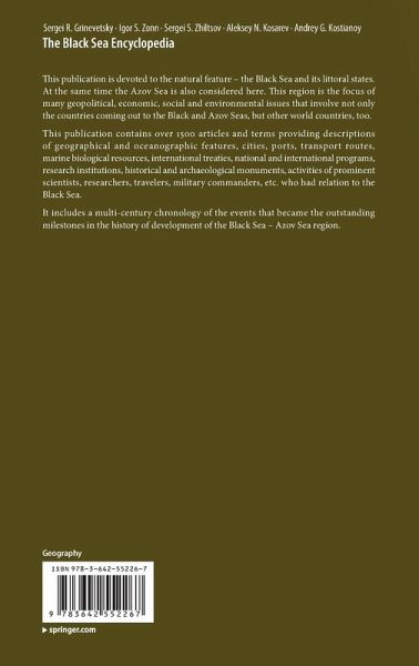 This publication contains over 1500 articles and terms providing descriptions of geographical and oceanographic features, cities, ports, transport routes, marine biological resources, international treaties, national and international programs, research institutions, historical and archaeological monuments, activities of prominent scientists, researchers, travelers, military commanders, etc. who had relation to the Black Sea.