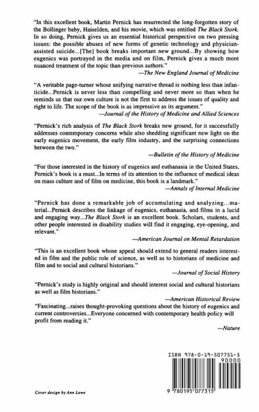 In the late 1910s Dr. Harry J. Haiselden, a prominent Chicago surgeon, electrified the nation by allowing the deaths of at least six infants he diagnosed as "defectives". Seeking to publicize his efforts to eliminate the "unfit", he displayed the dying infants to journalists, wrote about them for the Hearst newspapers, and starred in a feature film about his crusade. Prominent Americans from Clarence Darrow to Helen Keller rallied to his support. The Black Stork tells this startling story, based on newly-rediscovered sources and long-lost motion pictures, in order to illuminate many broader controversies. The book shows how efforts to improve human heredity (eugenics) became linked with mercy-killing (euthanasia) and with race, class, gender, and ethnic hatreds. It documents how mass culture changed the meaning of medical concepts like "heredity" and "disease", and how medical controversies helped shape the commercial mass media. It demonstrates how cultural values influence science, and how scientific claims of objectivity have shaped modern culture. While focused on the formative years of early 20th century America, The Black Stork traces these issues from antiquity to the rise of Nazism, and to the "Baby Doe", assisted suicide, and human genome initiative debates of today.