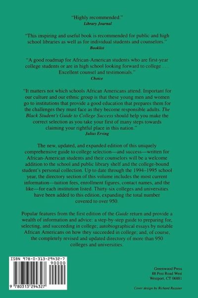 The book begins with a step-by-step guide to a successful college selection process and freshman year, offering insights invaluable to students, parents, teachers, guidance counselors,and athletic recruiters. Next, notable African-American men and women tell the stories of their own college careers--from admission to graduation--in 27 short, autobiographical essays included in Part Two of the book, How I Did It. Also featured is a directory of more than 900 colleges and universities with information and statistics of particular interest to African-American students. The directory includes evaluations and listings of the most prestigious American undergraduate institutions, with detailed information on special programs and activities for African-American students, entries on historically Black U.S. colleges and universities and African and Caribbean institutions, and information on Black Greek letter organizations. A subject index concludes the guide. This is the only complete college guide specifically designed for African-American students and their counselors. The Black Student's Guide to College Success is a step-by-step quide and reference tool for students, parents, teachers, guidance counselors, and athletic recruiters--leading the reader through a successful college selection process and freshman year. A directory of more than 900 colleges and universities is provided, with information of particular interest to African-American students. Many distinguished Black educators and prominent Americans have contributed to make this work a comprehensive reference tool which addresses the questions and problems encountered by African-American students. A foreword by Dr. Louis W. Sullivan, former U.S. Secretary of Health and Human Services, introduces the first part, How to Succeed in College, featuring 14 hard-hitting essays geared to the needs of the African-American student during the college selection process and the freshman year. Of special interest are: * essays on the Black student athlete; * choosing a Black or an integrated college; * financing a college education; * connecting with students from Africa and the Caribbean; * getting along with other ethnic groups on campus; * handling academic stress; * study habits and hints; and * affirmative action. The next part, How I Did It, includes inspirational autobiographical essays on the college careers--from admission to graduation--of 27 notable African-American men and women. These success stories will motivate and encourage students as they consider their college options. The last part, Directory of Colleges and Universities, includes: (1) complete up-to-date information on more than 900 American colleges and universities (2) the names of recruiters of African-American students (3) the percentage of African-American students enrolled and those who graduate (4) the percentage of student athletes who graduate, and (5) information on African-American organizations Evaluations and listings of the most prestigious U.S. undergraduate institutions, detailed information on programs and activities of special interest to African-American students, listings of historically Black colleges and universities (and evaluations of the top ten), profiles of universities in Africa and the Caribbean, and information on national Black Greek letter organizations are also included in this thorough, accessible directory. A subject index concludes the guide. This work is especially useful for high school and public libraries, high school guidance and career counselors, college admissions offices, athletic recruiters, and African-American education organizations, as well as for aspiring African-American students in search of the motivational key to achievement in college.