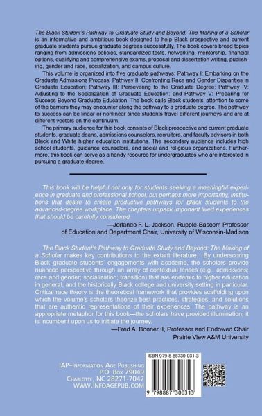 The Black Student's Pathway to Graduate Study and Beyond: The Making of a Scholar is an informative and ambitious book designed to help Black prospective and current graduate students pursue graduate degrees successfully. The book covers broad topics ranging from admissions policies, standardized tests, networking, mentorship, financial options, qualifying and comprehensive exams, proposal and dissertation writing, publishing, gender and race, socialization, and campus culture. This volume is organized into five graduate pathways: Pathway I: Embarking on the Graduate Admissions Process; Pathway II: Confronting Race and Gender Disparities in Graduate Education; Pathway III: Persevering to the Graduate Degree; Pathway IV: Adjusting to the Socialization of Graduate Education; and Pathway V: Preparing for Success Beyond Graduate Education. The book calls Black students' attention to some of the barriers they may encounter along the pathway to a graduate degree. The pathway to success can be linear or nonlinear since students travel different journeys and are at different vectors on the continuum. The primary audience for this book consists of Black prospective and current graduate students, graduate deans, admissions counselors, recruiters, and faculty advisors in both black and white higher education institutions. The secondary audience includes high school students, guidance counselors, and social and religious organizations. Furthermore, this book can serve as a handy resource for undergraduates who are interested in pursuing a graduate degree.