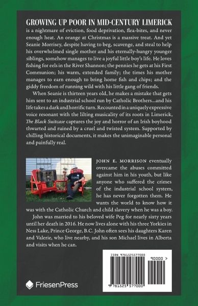 Growing up poor in mid-century Limerick is a nightmare of eviction, food deprivation, flea-bites, and never enough heat. An orange at Christmas is a massive treat. And yet Seanie Morrisey, despite having to beg, scavenge, and steal to help his overwhelmed single mother and his eternally-hungry younger siblings, somehow manages to live a joyful little boy's life. He loves fishing for eels in the River Shannon; the pennies he gets at his First Communion; his warm, extended family; the times his mother manages to earn enough to bring home fish and chips; and the giddy freedom of running wild with his little gang of friends. When Seanie is thirteen years old, he makes a mistake that gets him sent to an industrial school run by Catholic Brothers...and his life takes a dark and horrific turn. Recounted in a uniquely expressive voice resonant with the lilting musicality of its roots in Limerick, The Black Suitcase captures the joy and horror of an Irish boyhood thwarted and ruined by a cruel and twisted system. Supported by chilling historical documents, it makes the unimaginable personal and painfully real.