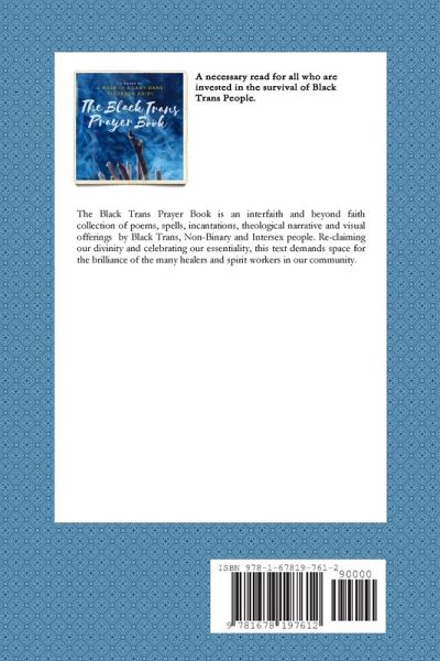 The Black Trans Prayer Book is an interfaith and beyond faith collection of poems, spells, incantations, theological narrative and visual offerings by Black Trans, Non-Binary and Intersex people. Re-claiming our divinity and celebrating our essentiality, this text demands space for the brilliance of the many healers and spirit workers in our community.