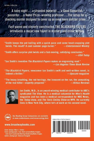 From the #1 New York Times bestselling author of The Ancient Nine and The Clean 20 A rainy night . . . A stranded motorist . . . A Good Samaritan passerby … a Nobel Prize-winning professor . . . The setup for a shocking murder designed to cover up an even more sinister crime . . . The Blackbird Papers marks the debut of Ian Smith, a major new talent in crime fiction, and of Sterling Bledsoe, his smart and occasionally combative sleuth. World-renowned Dartmouth professor Wilson Bledsoe is returning from a party celebrating his latest honor when he encounters a broken-down pickup on the secluded country road to his home. The next day, the discovery of his body with a vicious racist epithet carved into his chest leads to the quick arrest of two loathsome white supremacists. The local authorities seem ready to accept the case at face value as a racial hate crime. But the murdered professor's brother, FBI agent Sterling Bledsoe, has inserted himself into the investigation and isn't ready to buy into this pat solution. A look around his brother's lab and brief interviews with his students and colleagues pique Sterling's curiosity about Wilson's pet project: a nearly completed paper on the mysterious deaths of hundreds of local blackbirds. Fast-paced and cleverly constructed, The Blackbird Papers introduces a major new voice in mystery and crime fiction.