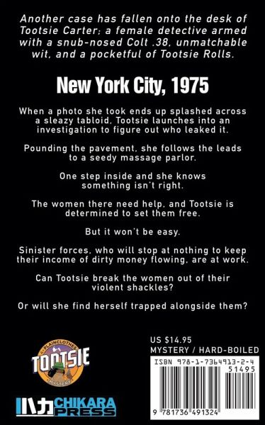 Another case has fallen onto the desk of Tootsie Carter; a female detective armed with a snub-nosed Colt .38, unmatchable wit, and a pocketful of Tootsie Rolls. New York City, 1975 When a photo she took ends up splashed across a sleazy tabloid, Tootsie launches into an investigation to figure out who leaked it. Pounding the pavement, she follows the leads to a seedy massage parlor. One step inside and she knows something isn't right. The women there need help, and Tootsie is determined to set them free. But it won't be easy. Sinister forces, who will stop at nothing to keep their income of dirty money flowing, are at work. Can Tootsie break the women out of their violent shackles? Or will she find herself trapped alongside them?