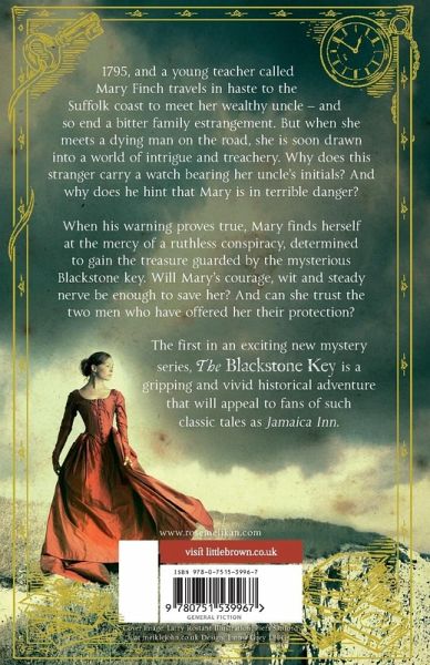 1795, and a young woman called Mary Finch travels in haste from Cambridge to the Suffolk coast. She has been invited to meet her wealthy uncle - and so end a twenty-year estrangement. But before she reaches her destination she discovers a dying man on the road. He is a stranger, and yet he is carrying an oddly familiar watch bearing her uncle's initials. He also seems to know who Mary is, and hints that she is in terrible danger. His whispered warning soon exposes Mary to a ruthless conspiracy that threatens not only her family's reputation, but her very life. Far from home, Mary must learn quickly how to distinguish friend from foe. Can she trust the two men who want to help her? What is their interest in the mysterious Blackstone Key? Does it guard a secret treasure, or might it have a more sinister purpose...? The first in an exciting new mystery series, The Blackstone Key is a gripping and vivid historical adventure that will appeal to fans of such classic tales as Jamaica Inn.