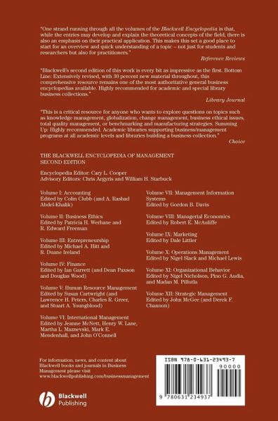 "Blackwell's second edition of this work is every bit asimpressive as the first. Bottom Line: Extensively revised, with 30percent new material throughout, this comprehensive resourceremains one of the most authoritative general businessencyclopedias available. Highly recommended for academic andspecial library business collections." - LibraryJournal