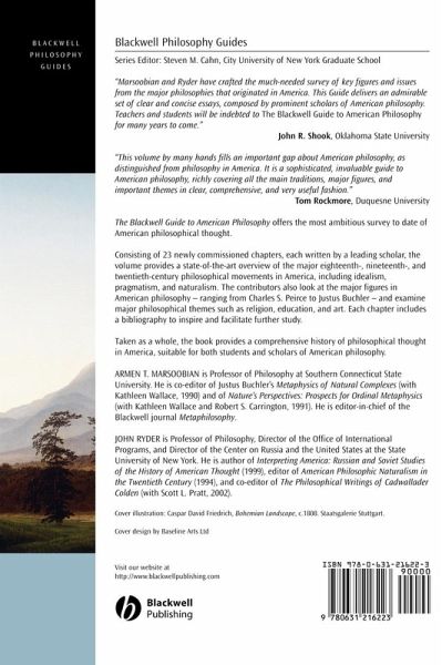 "Marsoobian and Ryder have crafted the much-needed survey of keyfigures and issues from the major philosophies that originated inAmerica. This Guide delivers an admirable set of clear and conciseessays, composed by prominent scholars of American philosophy.Teachers and students will be indebted to The Blackwell Guide toAmerican Philosophy for many years to come." John R. Shook,Oklahoma State University