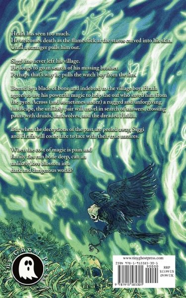 From beloved authors Leah Thomas and Kali Wallace comes a sweeping dark queer YA romantasy, inspired by Icelandic folklore, about a witch and shepherd boy who find love in the darkest of places. Hrafn has seen too much.He welcomes death as the flames lick at the staves carved into his skin.Until a stranger pulls him out.Siggi has never left his village.He longs to go in search of his missing brother.Perhaps that's why he pulls the witch boy from the fire.Bound by a blade of bone and indebted to the village boy, Hrafn agrees to use his powerful magic to help the oaf who saved him from the pyre. Across (and sometimes under) a rugged and unforgiving landscape, the unlikely pair will travel in search of answers, crossing paths with druids, darkwolves, and the dreaded Huldu. But when the deceptions of the past are peeled away, Siggi and Hrafn will come face to face with their true natures.When the cost of magic is pain and family ties run bone deep, can an unlikely love blossom in a dark and dangerous world?